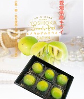 新鮮な愛媛県産キウイを贅沢に使用した、濃厚かつとろけるのフルーツ大福です。ひと口食べると、キウイの甘酸っぱい味わいが口いっぱいに広がります。大福のもちもちとした食感とのバランスが最高です。